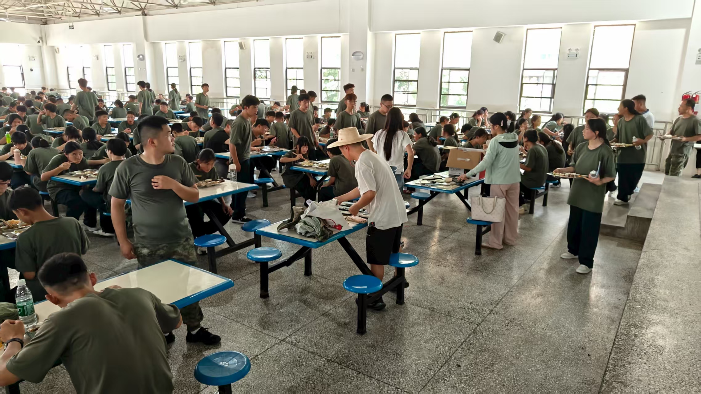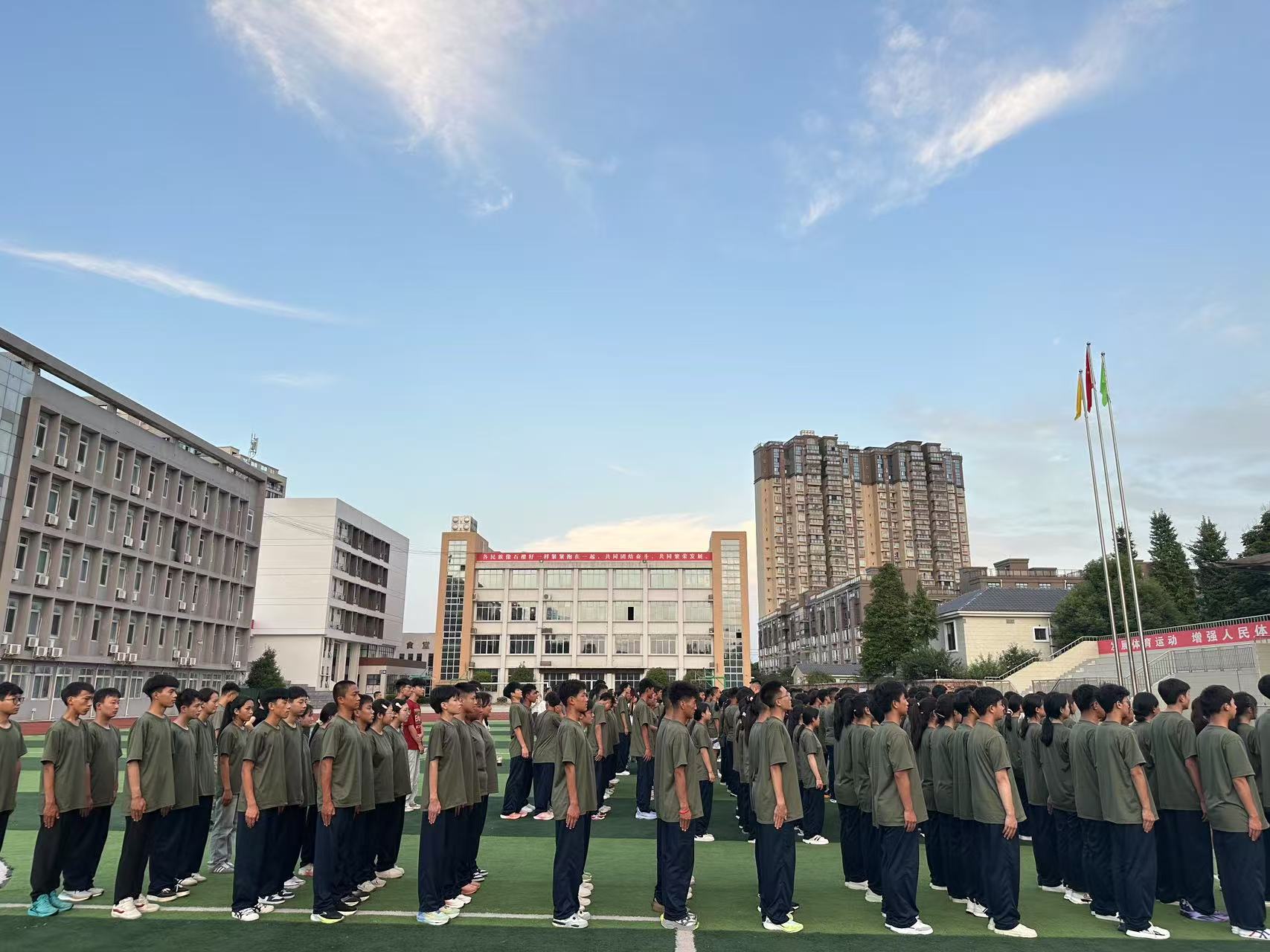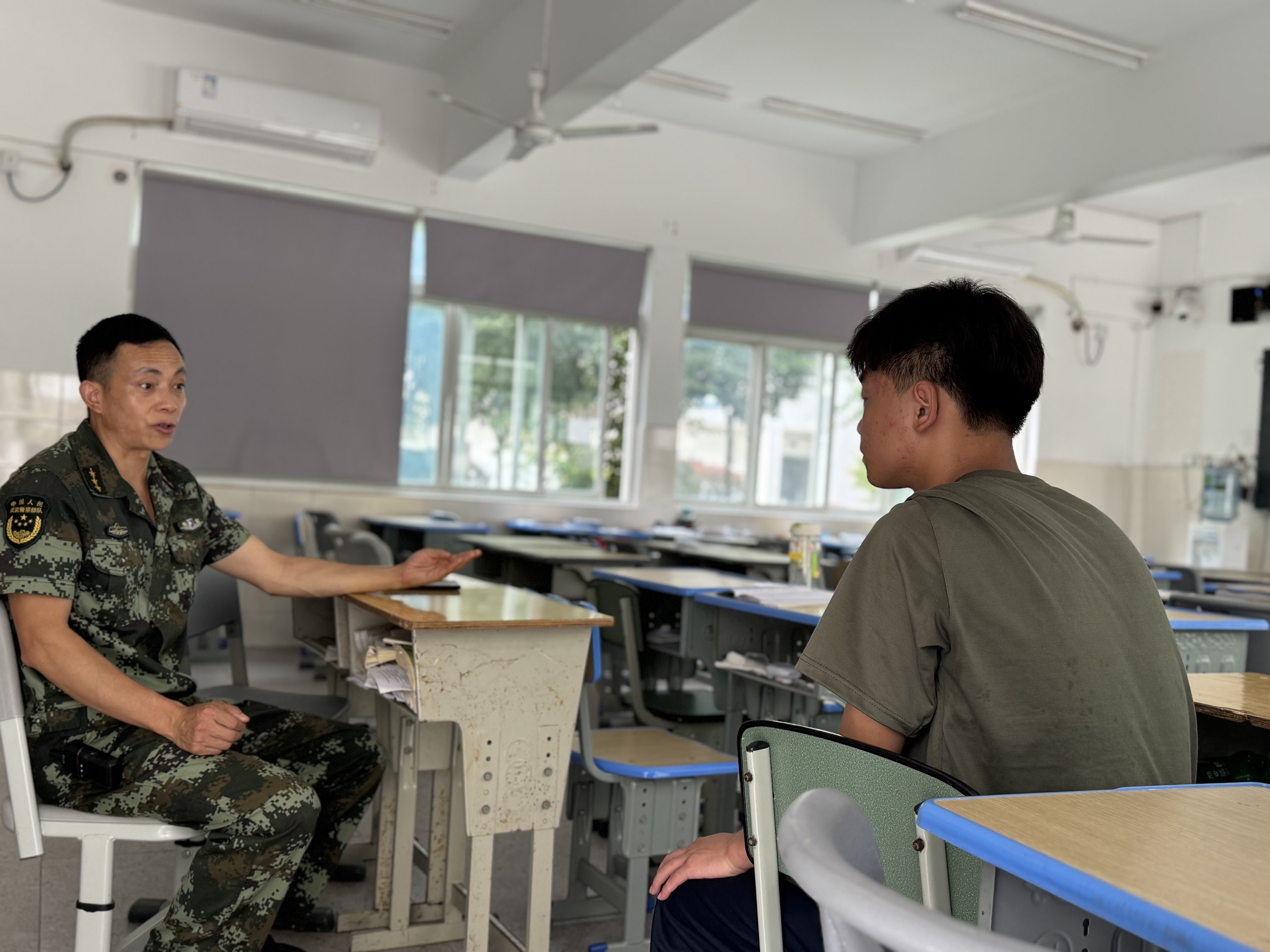 烈日下,班主任穿梭在训练场,矿泉水、藿香正气水等补给随时供应;休息时,学校领导对同学们进行深切关怀......这些藏在细节里的温暖,成了育训中最动人的底色。