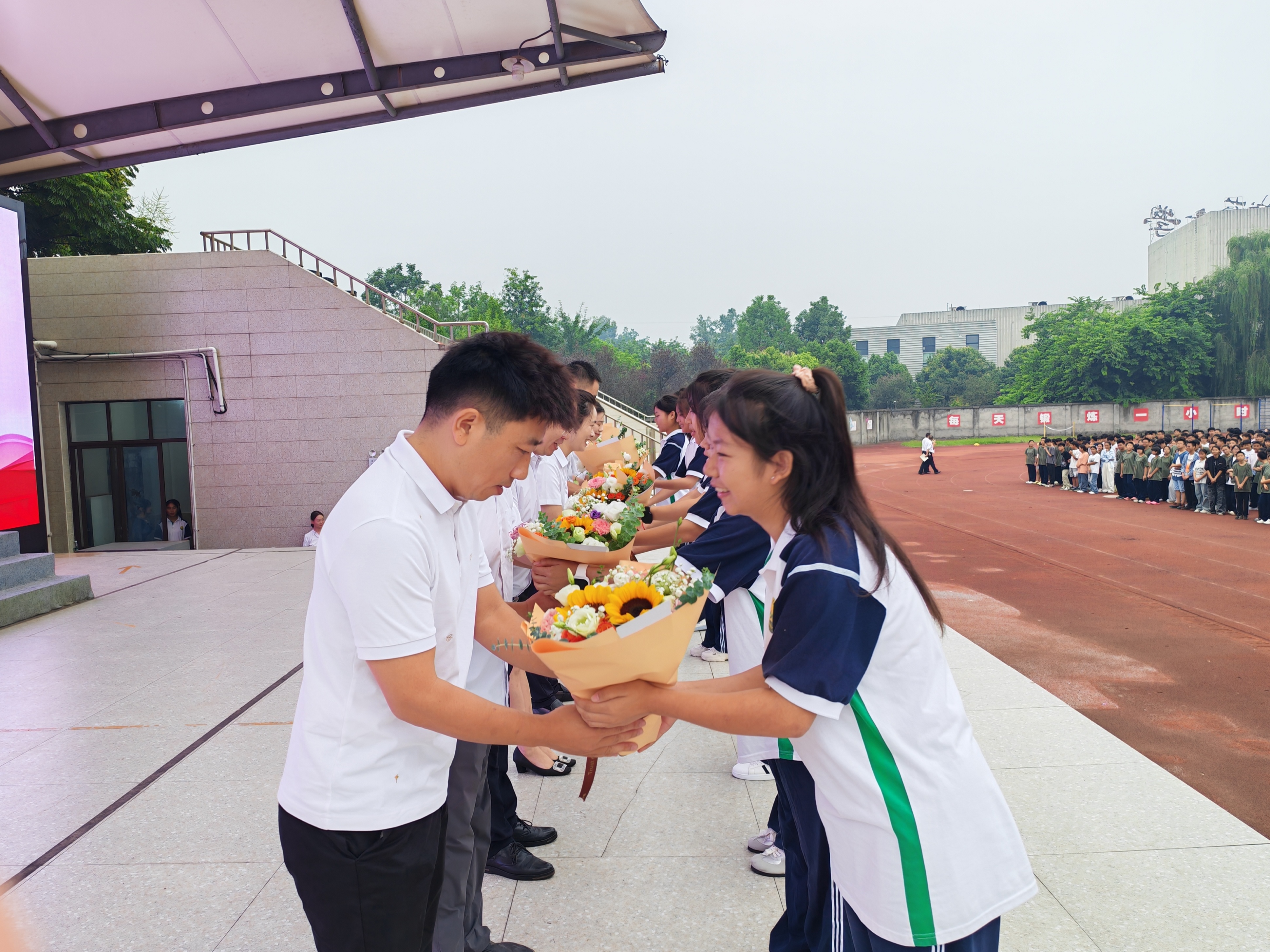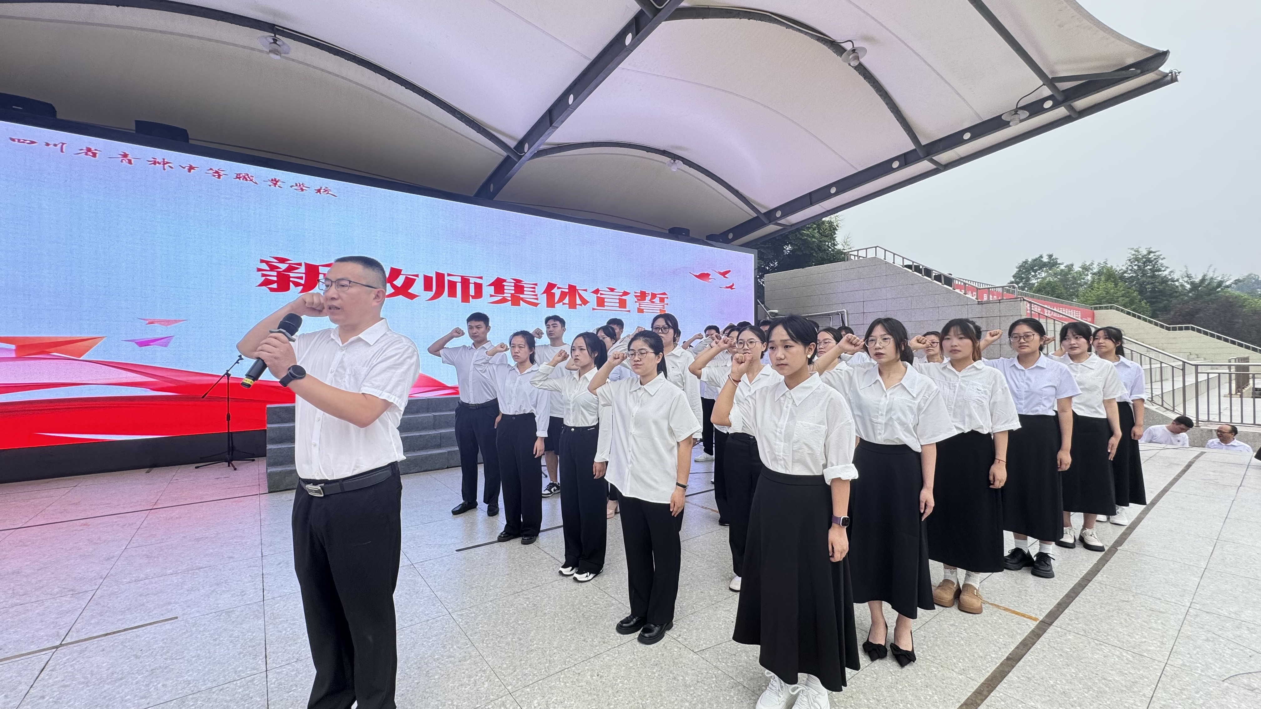 随后,2025年新入职教师在分管教学副校长邓光强的领誓下庄严宣誓,誓言响彻运动场,彰显着教师队伍的崭新活力与坚定信念。