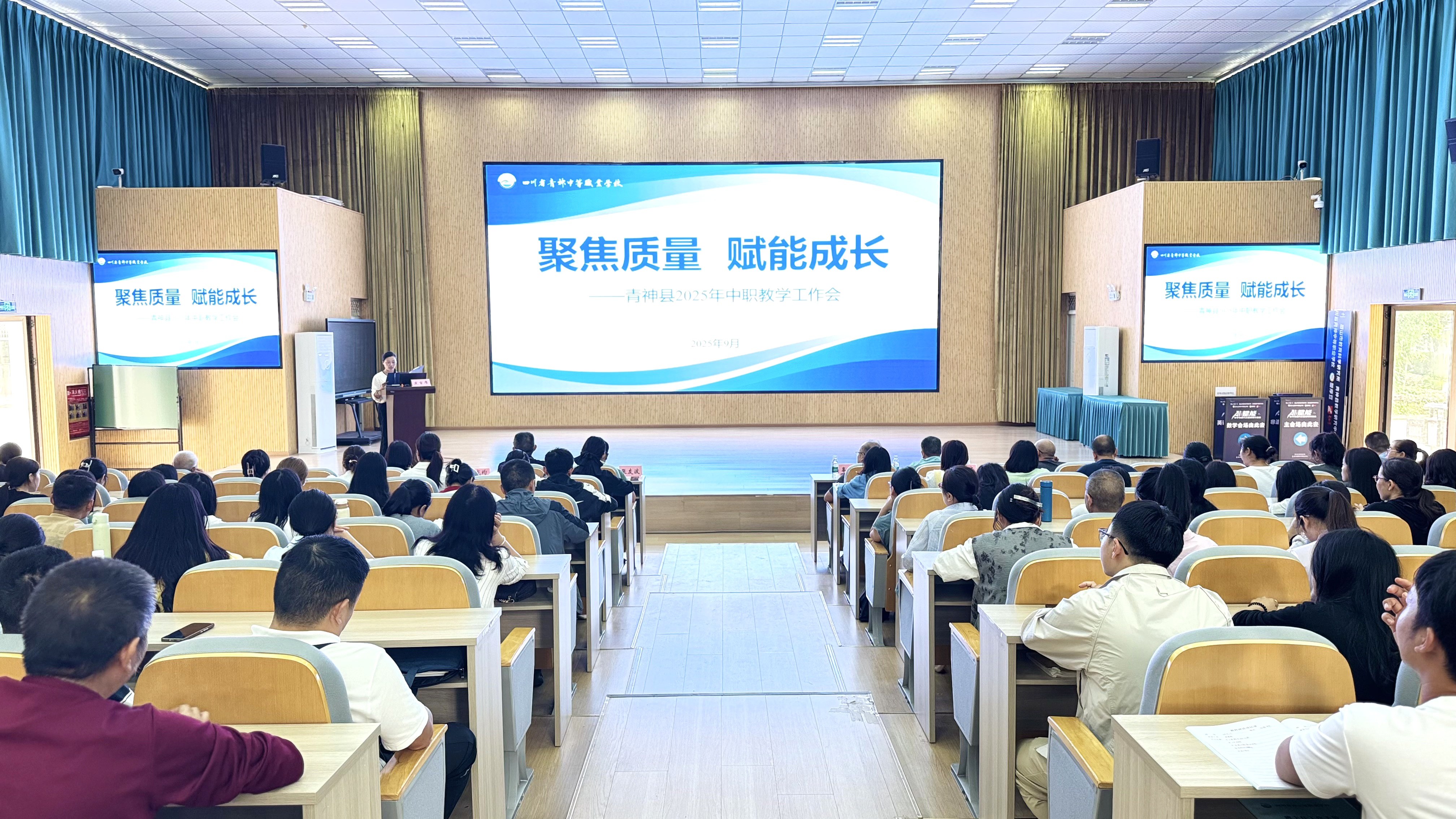 9月28日下午,青神中职校召开2025年教学工作会,县教体局分管领导、县教研中心相关负责人、中职校全体教师约200人参加会议。