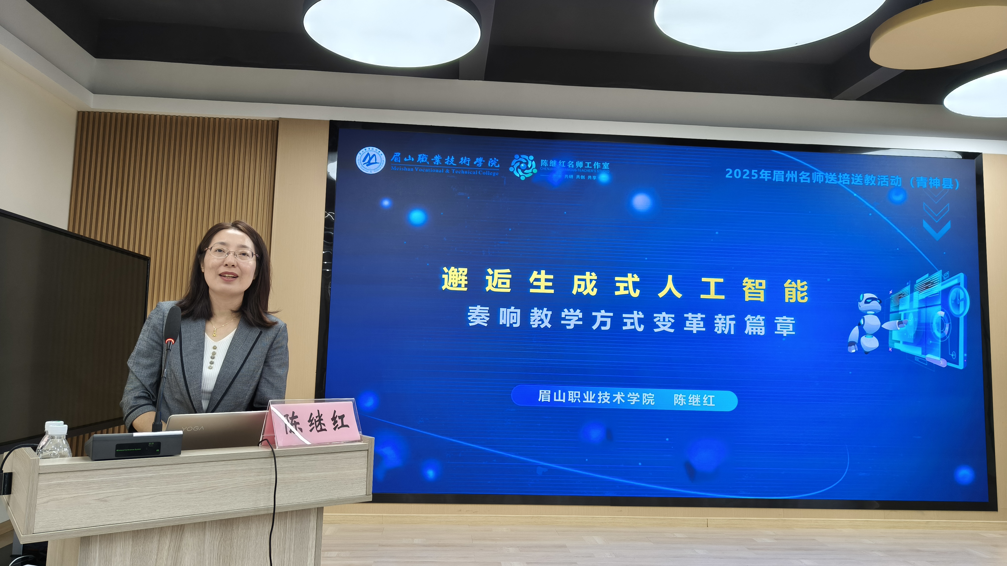 随后,陈继红眉州名师工作室领衔人陈继红教授作《人工智能赋能教育教学》专题讲座,结合实例为教师提供技术融入课堂的路径参考。研讨环节,参会人员围绕市计算机专业技能大赛方案明确目标与标准,分析上学期统考成绩找出教学薄弱点,并交流职教高考政策与备考策略,破解教学难点。