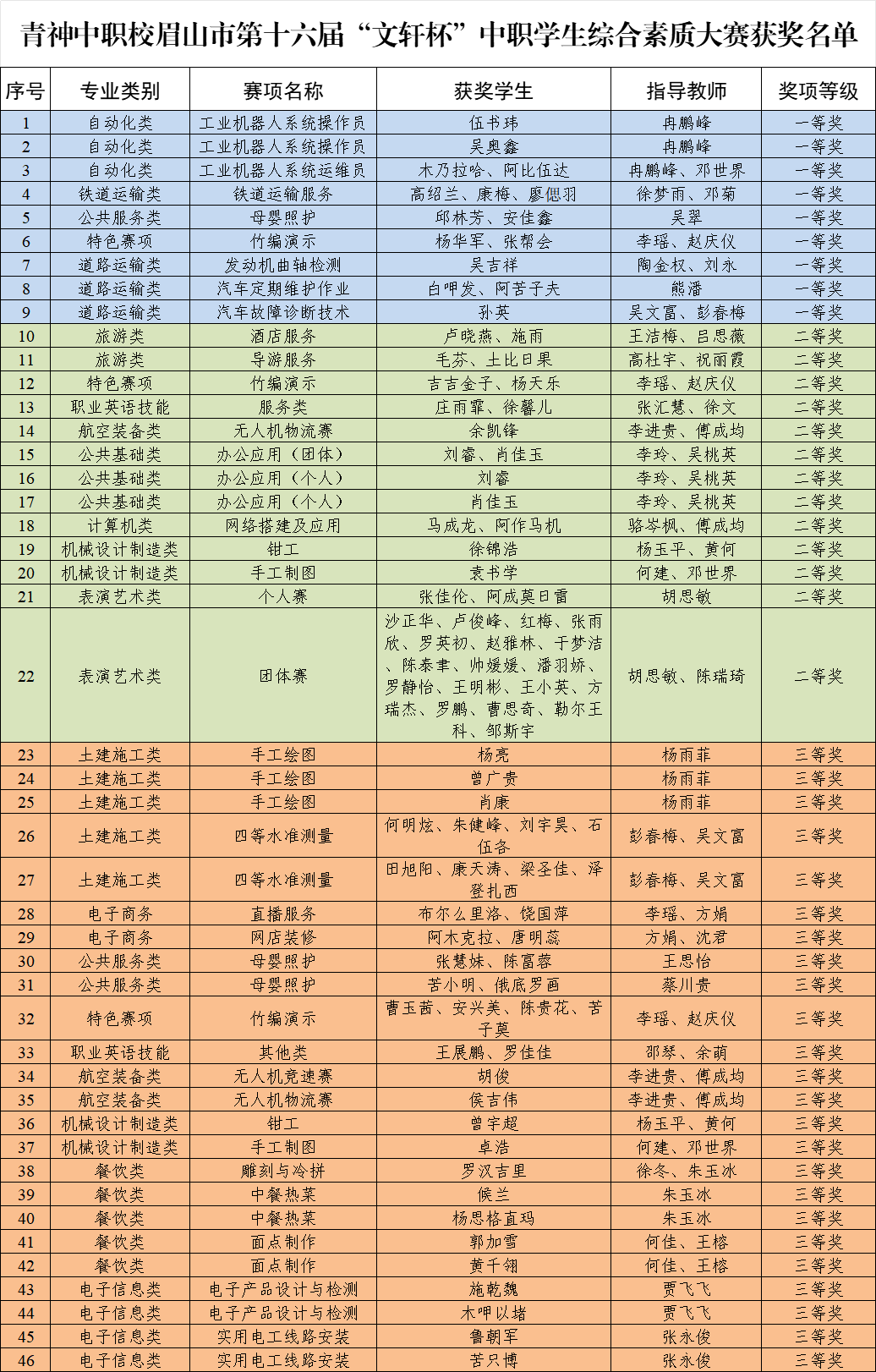 近日,眉山市第十六届“文轩杯”中职学生综合素质大赛圆满落幕。我校学子秉持“修德精艺、奋勇争先”的精神,在众多参赛学子中脱颖而出,斩获佳绩!