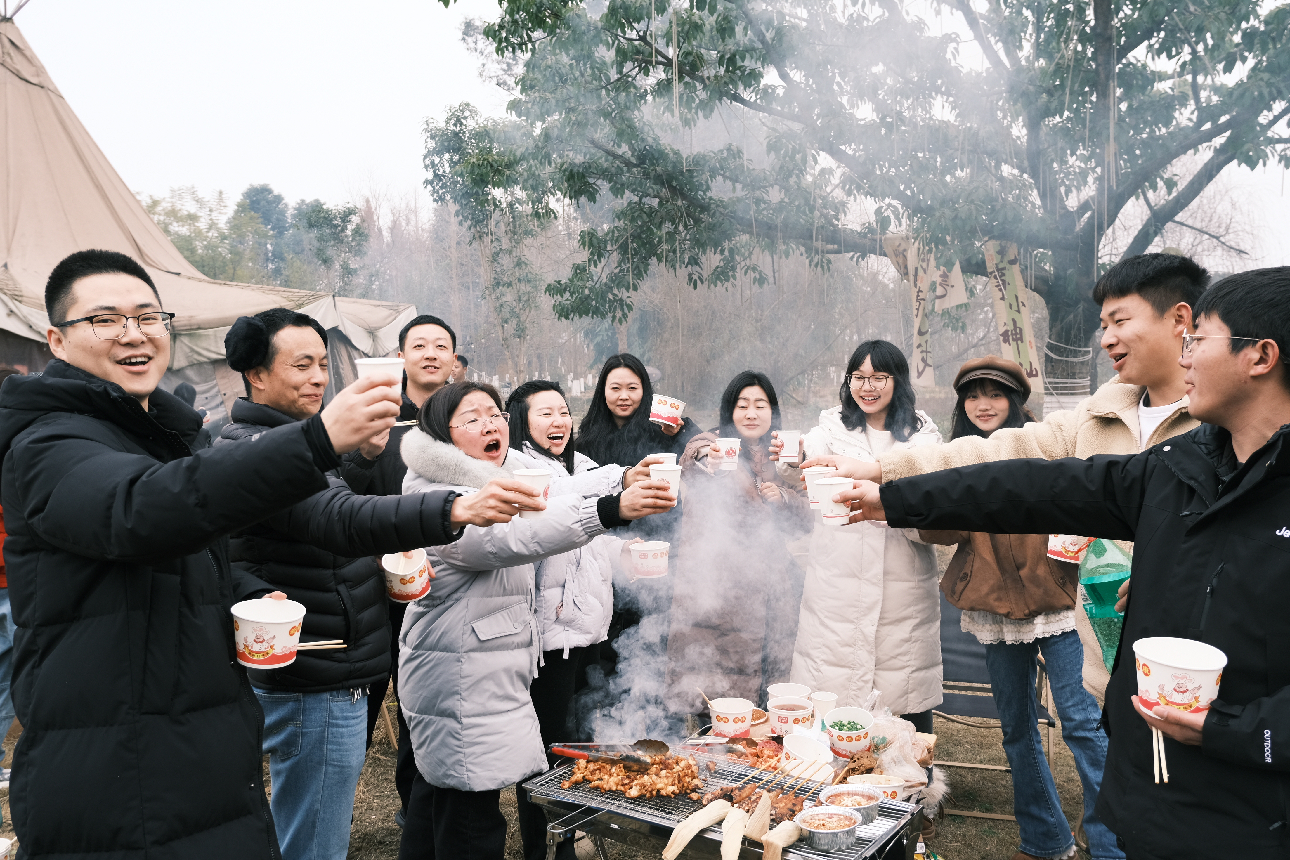 烧烤架旁烟火升腾,肉香与笑语交织弥漫,教职工们围坐畅谈、共话未来。在轻松互动中卸下整年疲惫,在烟火温情中拉近心与心的距离,更将 “同向同行、聚力致远” 的团队信念深深镌刻心间。