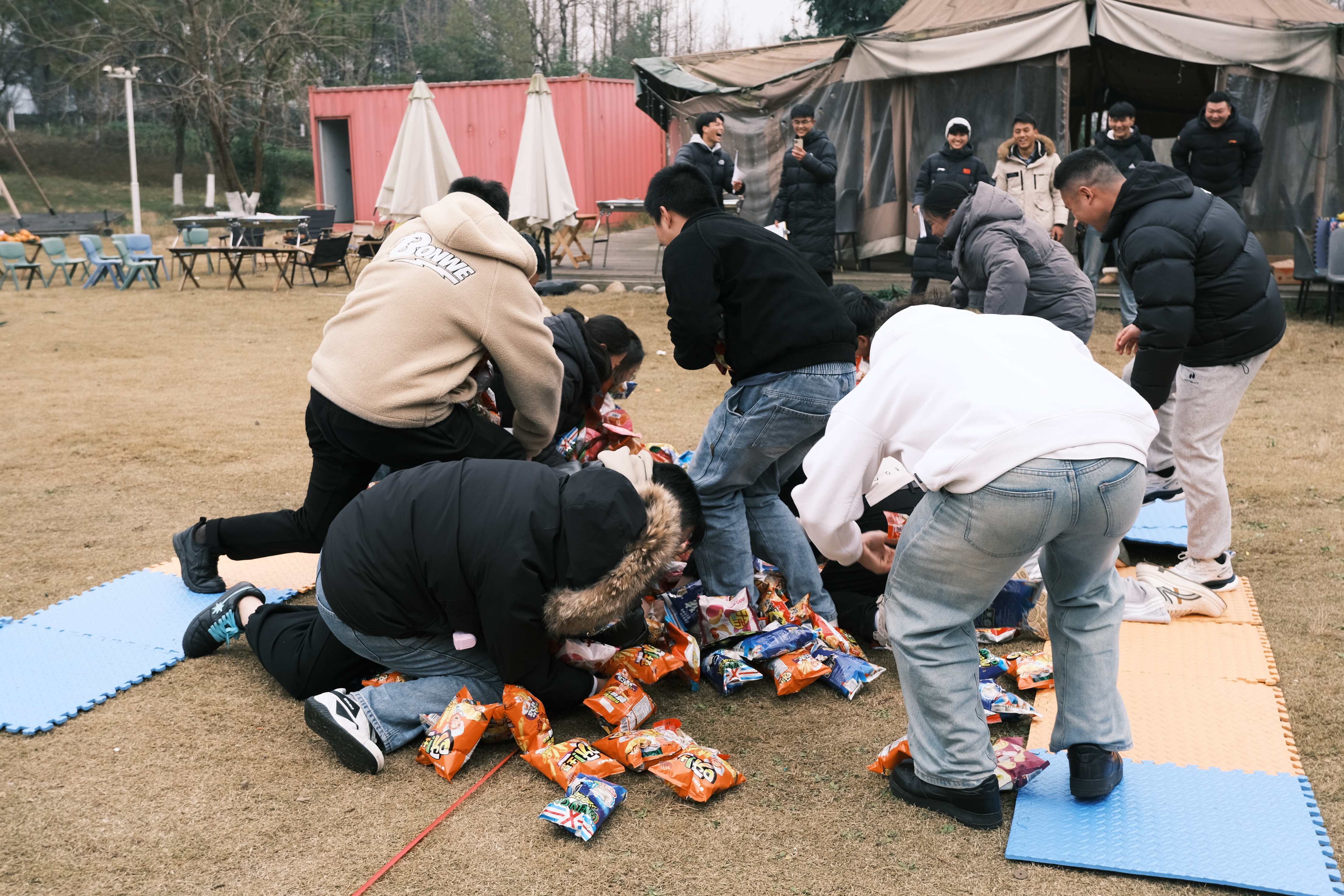 随后,教职工分组开启趣味狂欢:队旗制作环节创意迸发,各小组巧思设计彰显团队个性;抢零食大作战中欢呼不断,大家奋勇争先收获满满;趣味接力赛上默契十足,呐喊声与笑声此起彼伏。