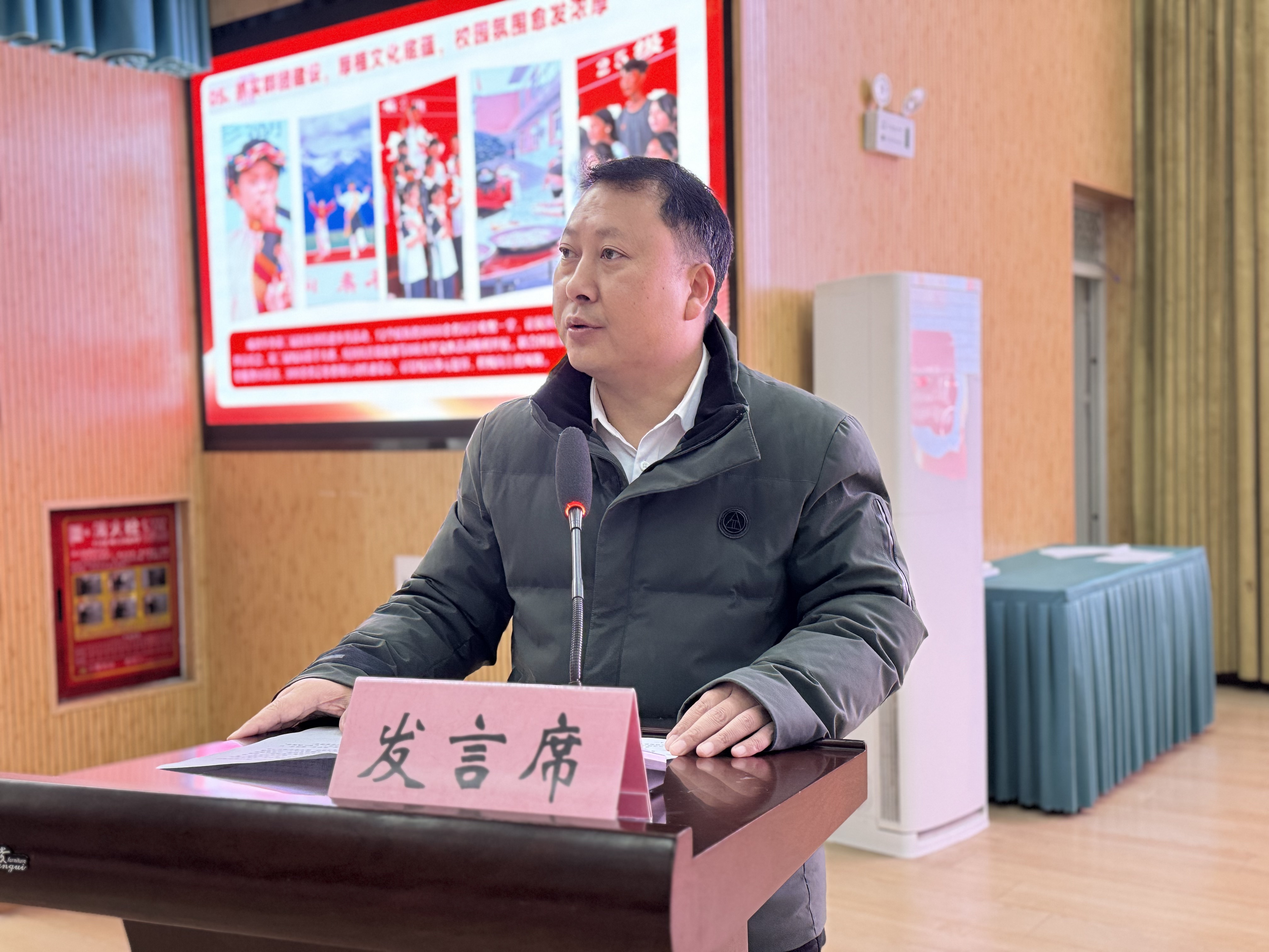 党支部书记、校长张友波在会上作总结发言:一是锚定“一条主线”“三大重点”“五大工程”一三五工作思路,要求各部门细化落实举措,确保思路落地见效;二是致以诚挚感谢,向一年来坚守岗位、勤勉奉献的全体教职工表达谢意;三是送上新春祝福,祝愿全体教职工度过一个平安祥和、喜乐充实的假期。